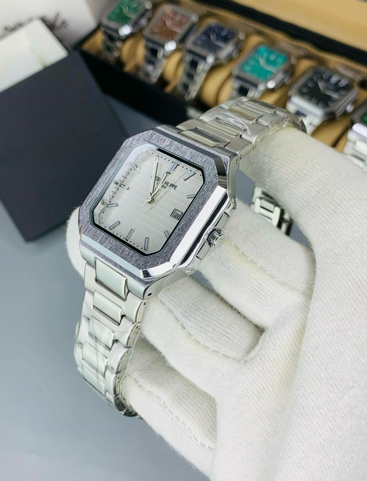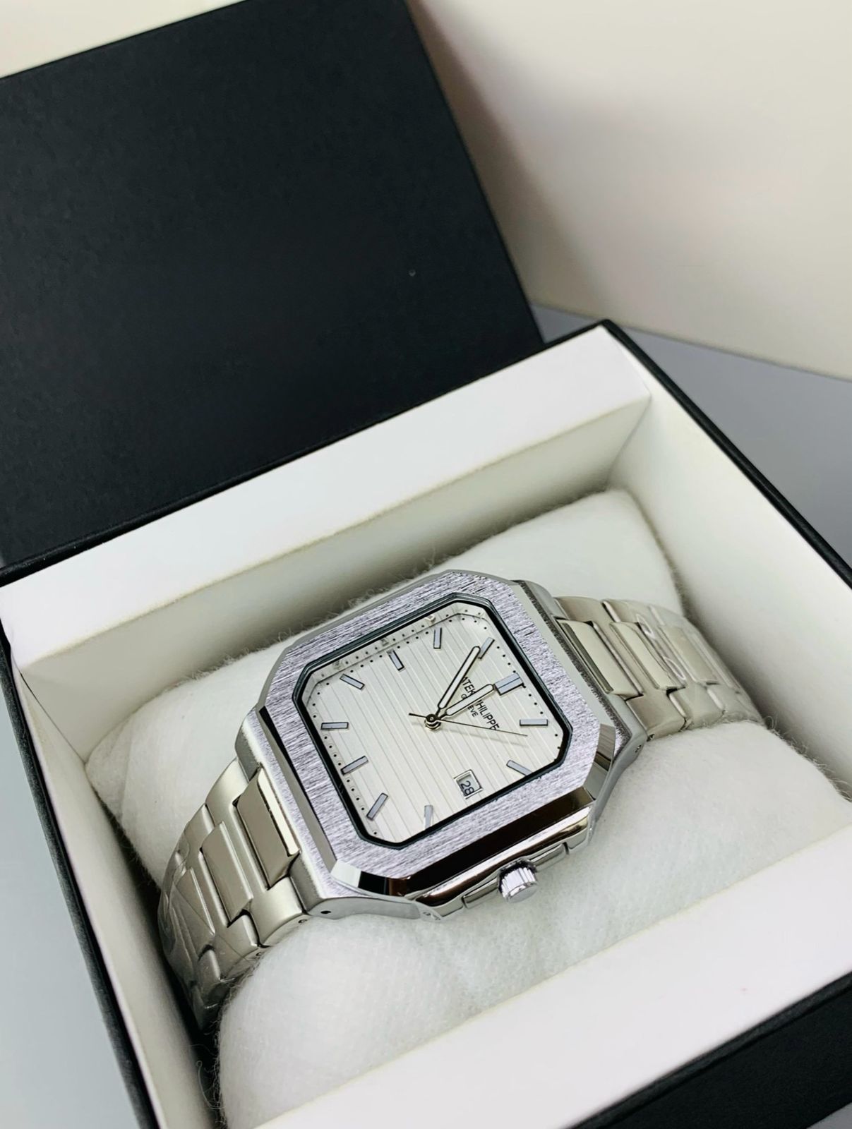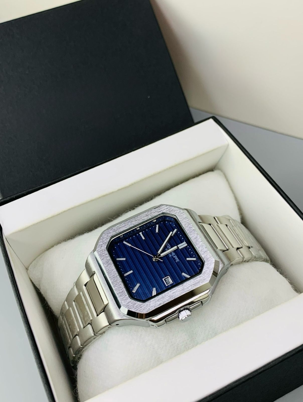 🌟 Patek Philippe Nautilus Silver Rectangle – Aura Times Edition 🌟