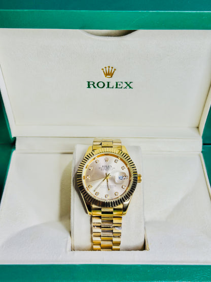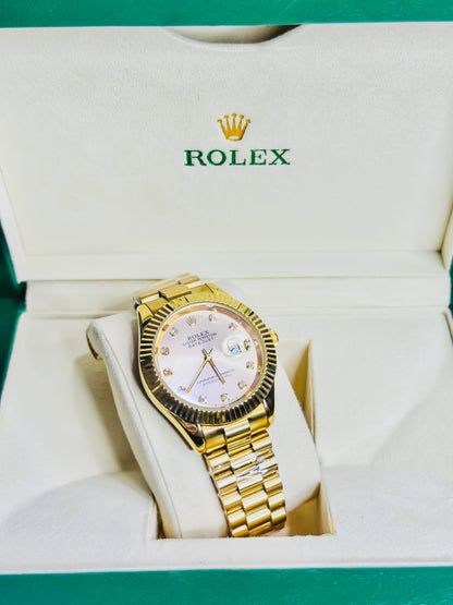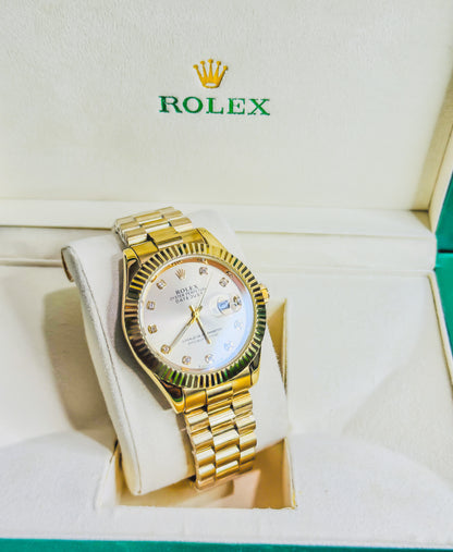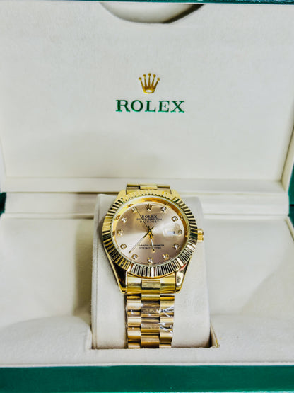 An iconic symbol of prestige and sophistication, the Rolex Royale is designed to make every moment feel royal. With its deep golden dial and sparkling crystal-styled markers, this timepiece strikes the perfect balance between classic elegance and modern flair.