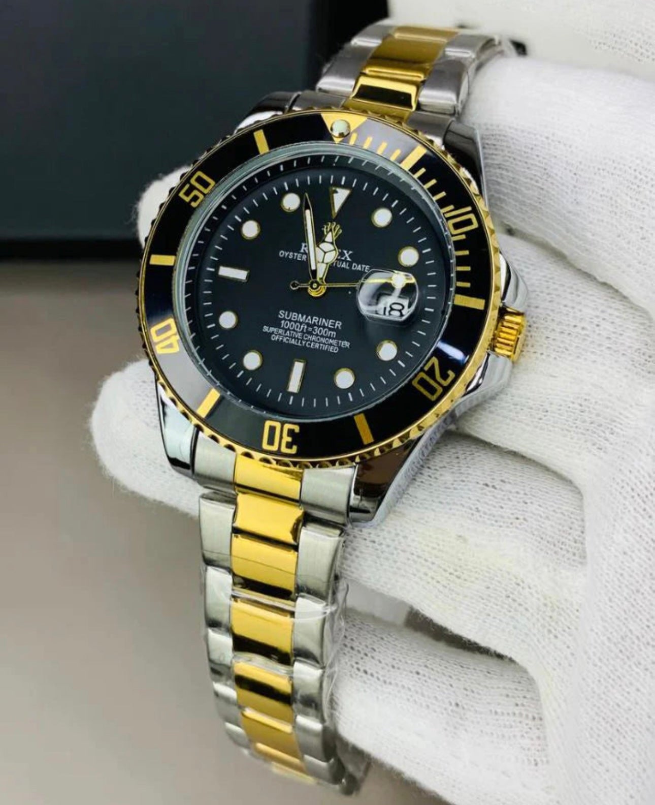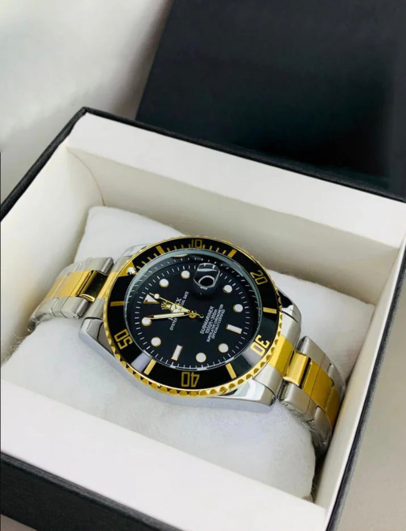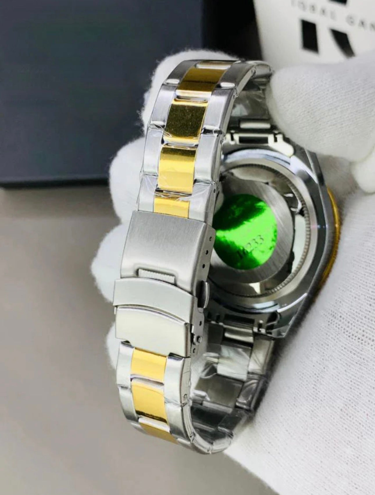 A Bold Fusion of Silver and Gold, crafted for those who live between elegance and adventure. Built with a stainless steel body and gold-tone accents, this legendary timepiece is water-resistant up to 300 meters and powered by precise automatic movement. Luminous markers and a magnified date window ensure clarity in any light, while its design makes every moment a statement of luxury.